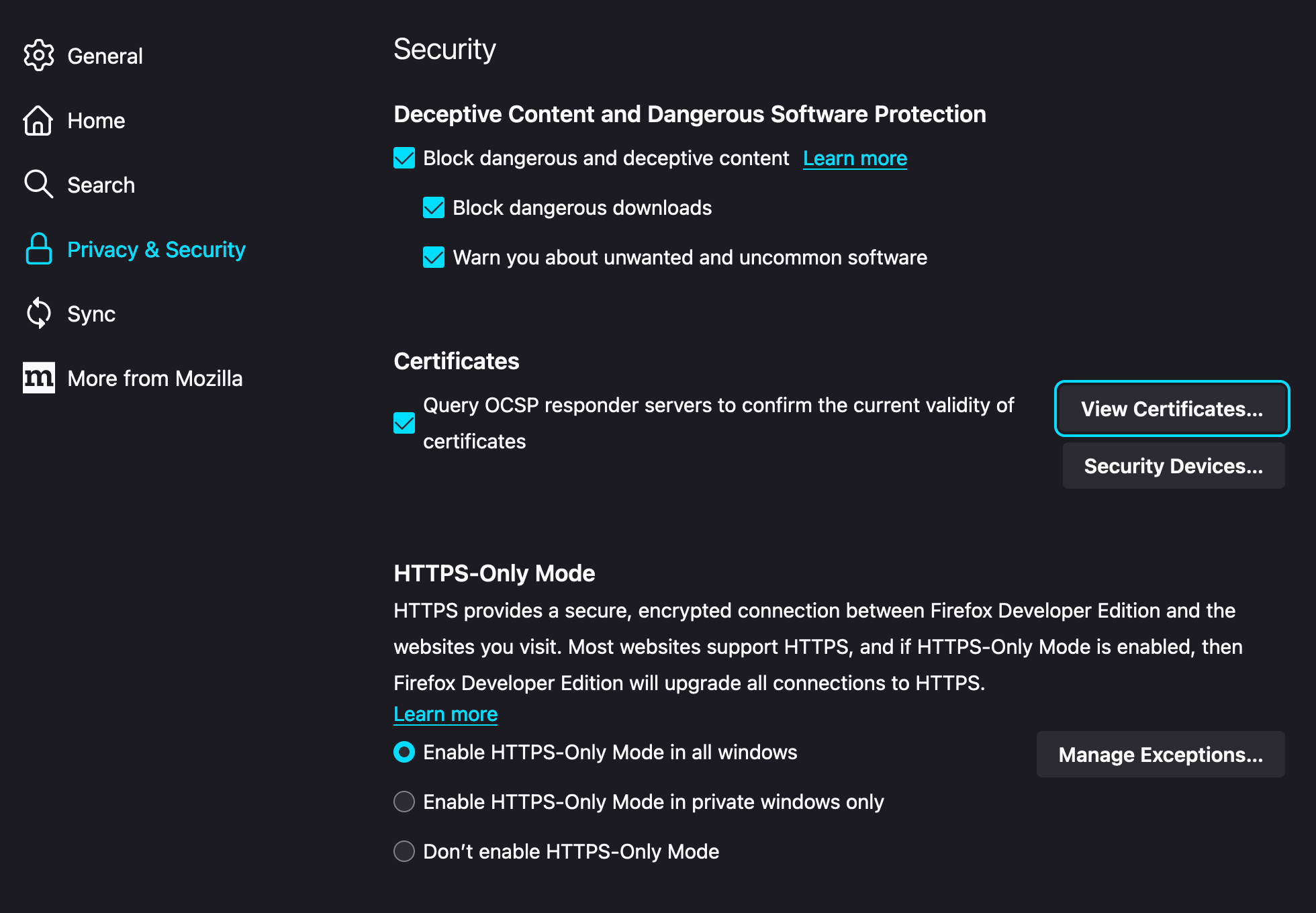 - Restart Firefox, and accessing localhost over HTTPS will now work!
