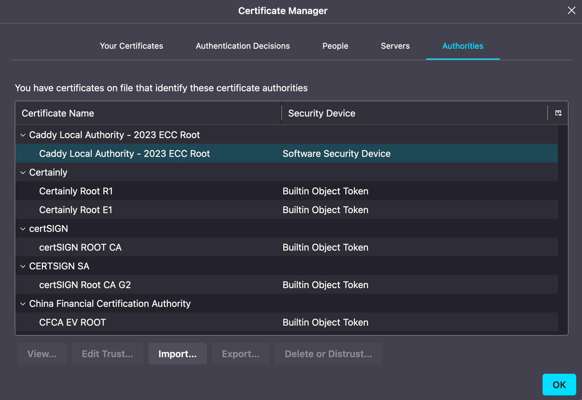 Caddy Local Authorityshould now be listed in theAuthoritiestab.
