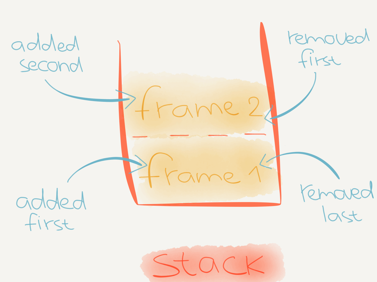 The frames in a stack are popped off in LIFO order.