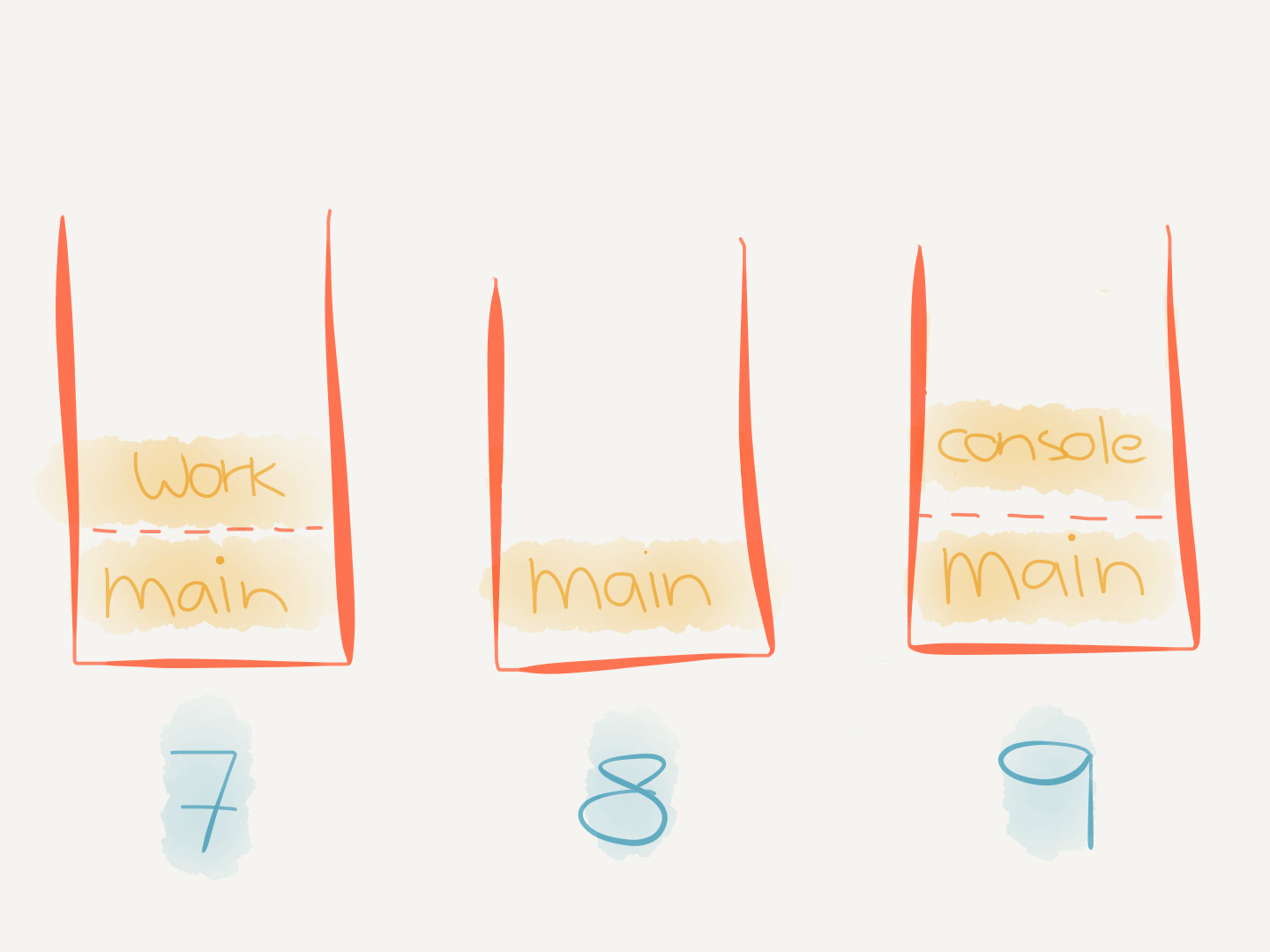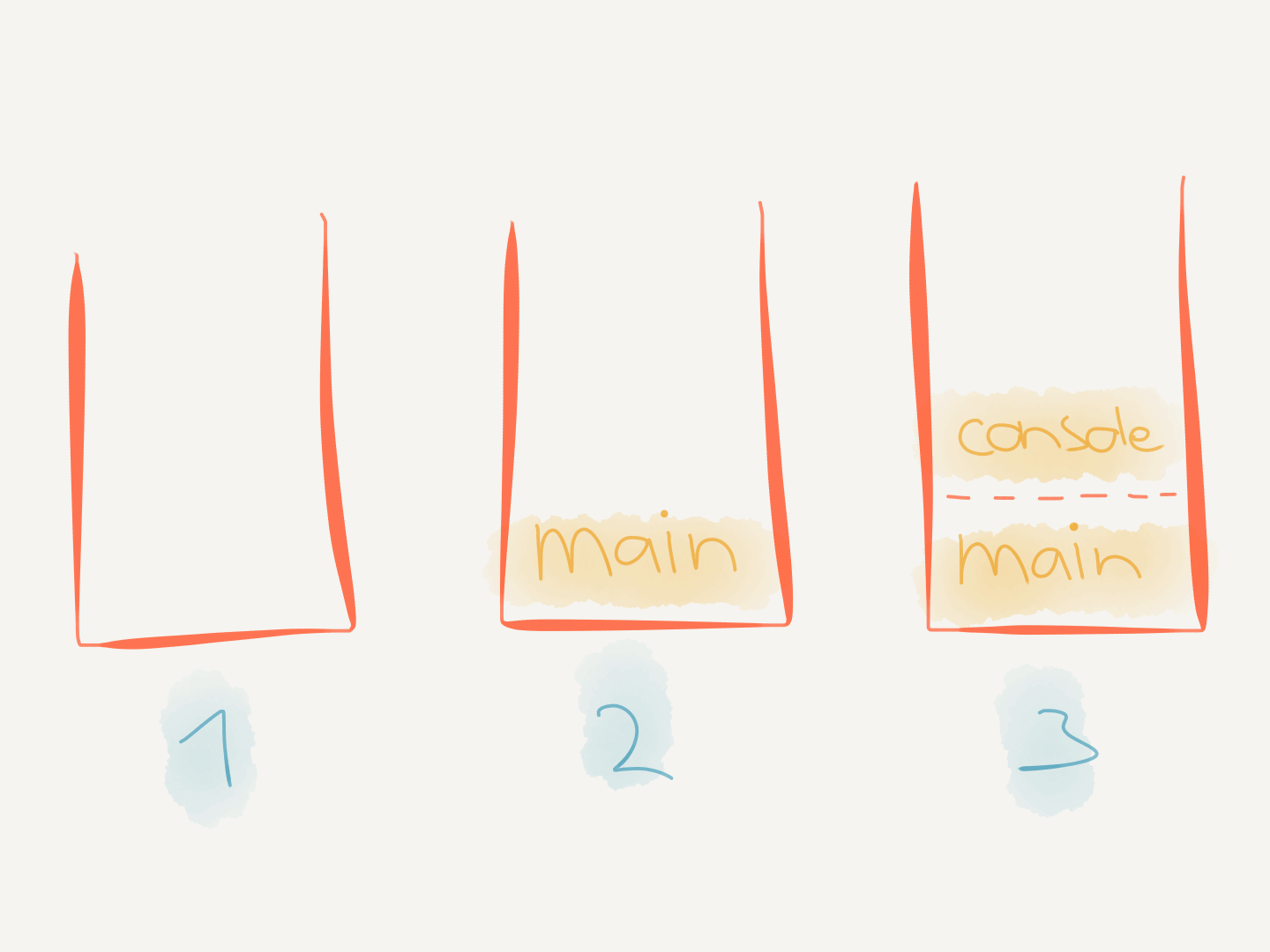 main()We can visualize the call stack over time like this.
