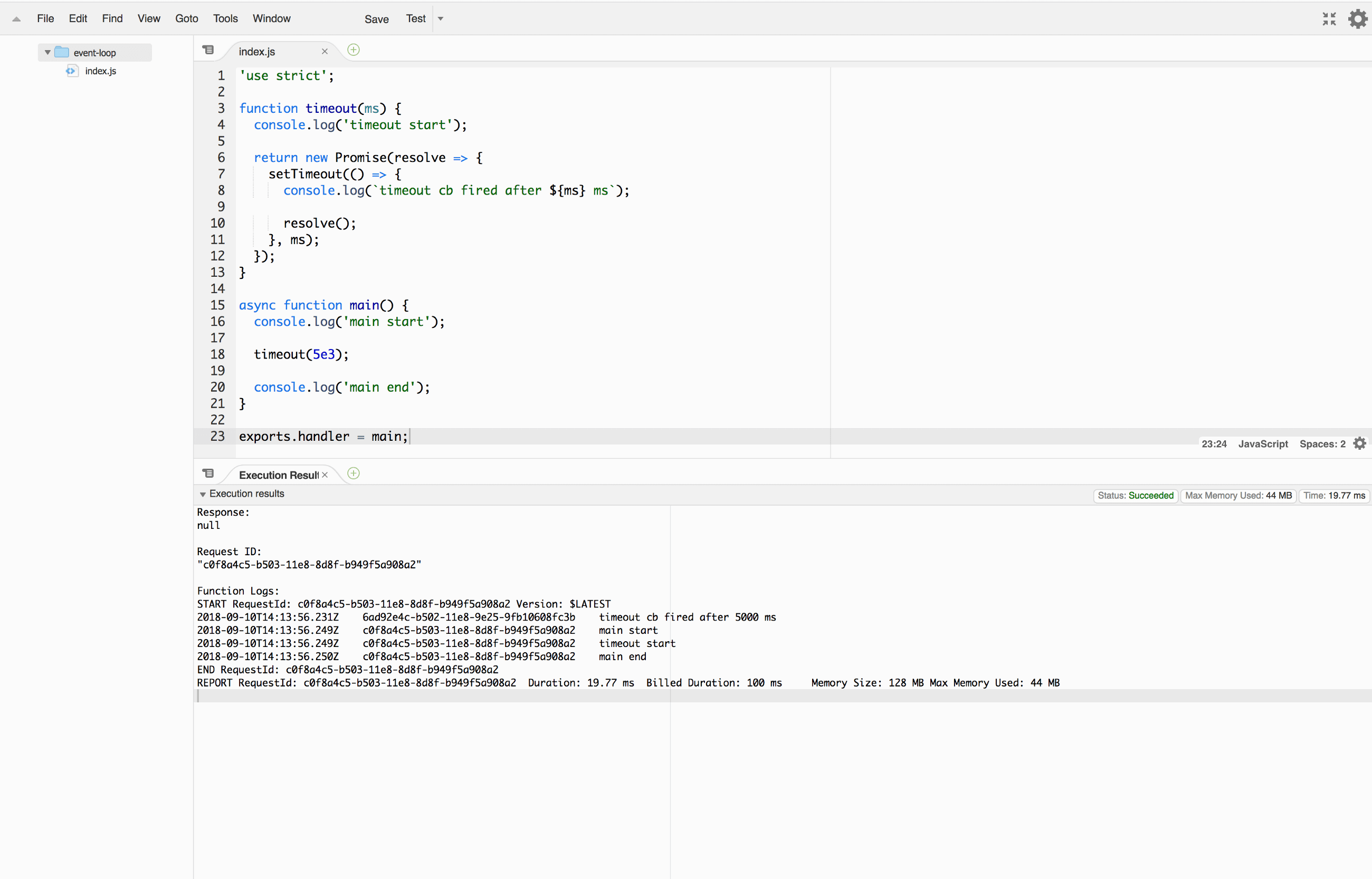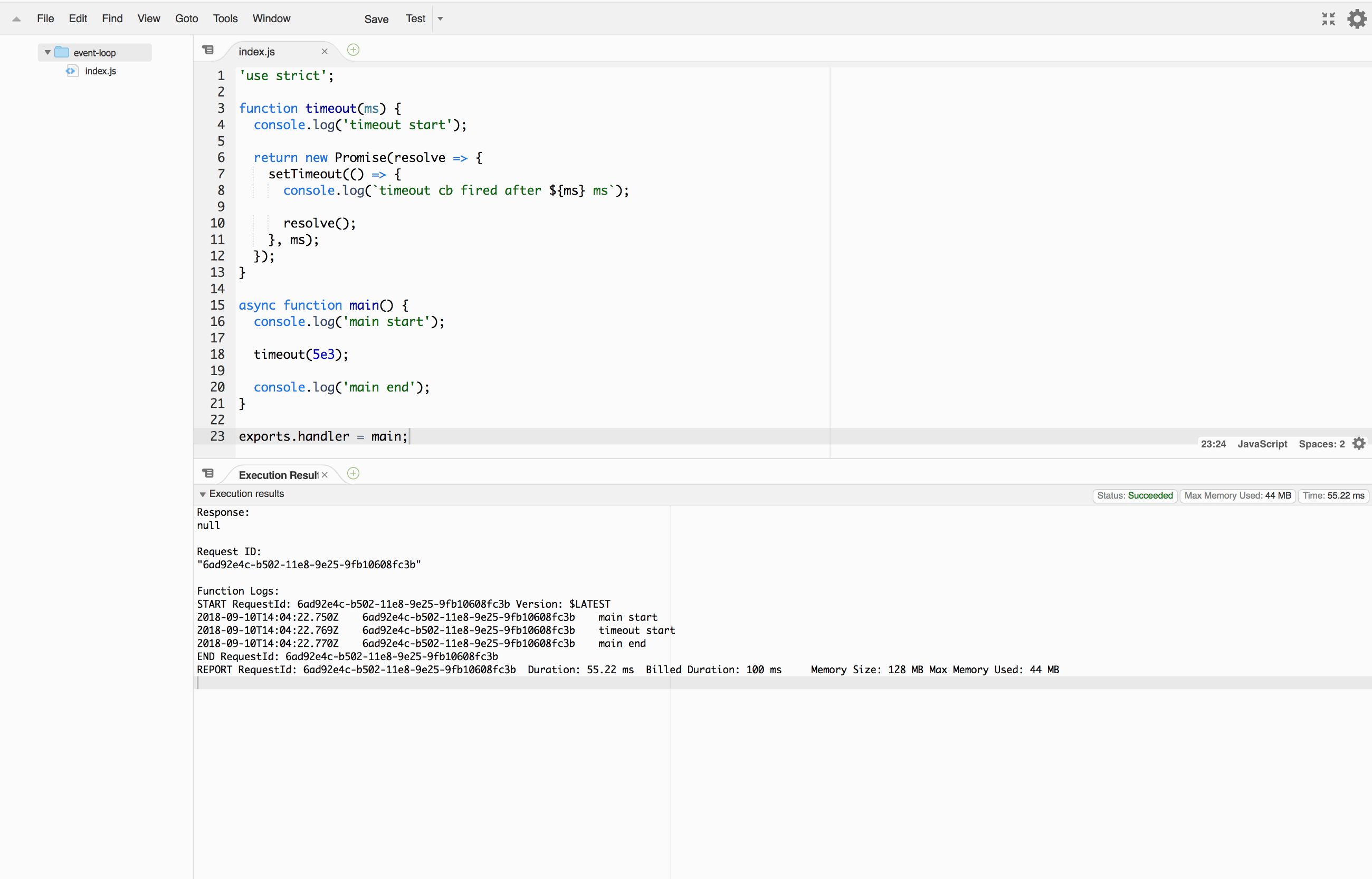 Now lets modify the code from timeout.js so it’s compatible with Lambda: