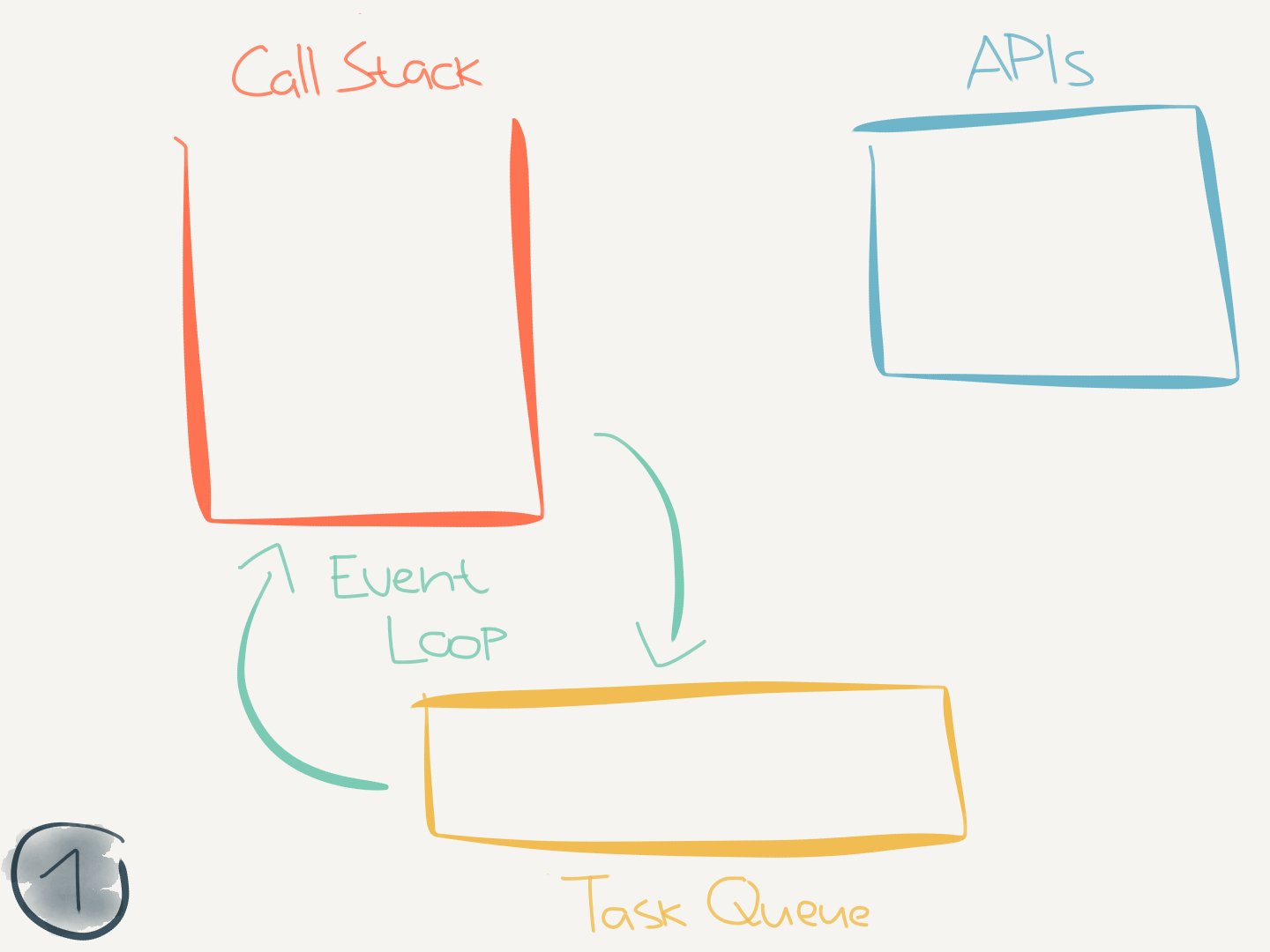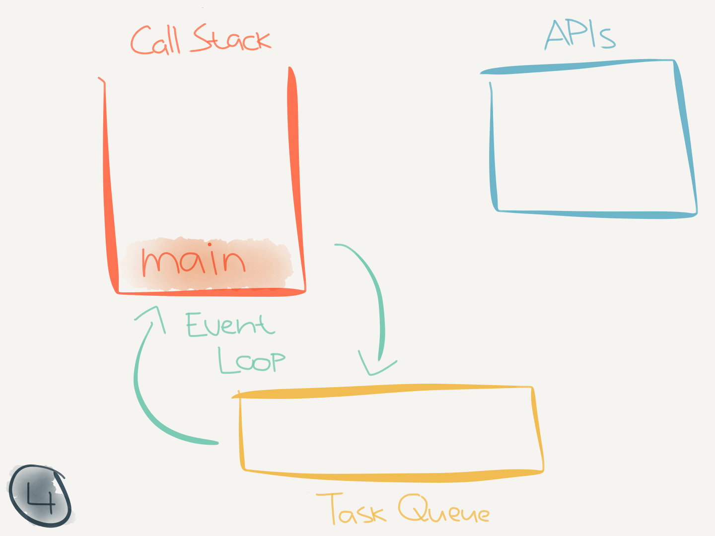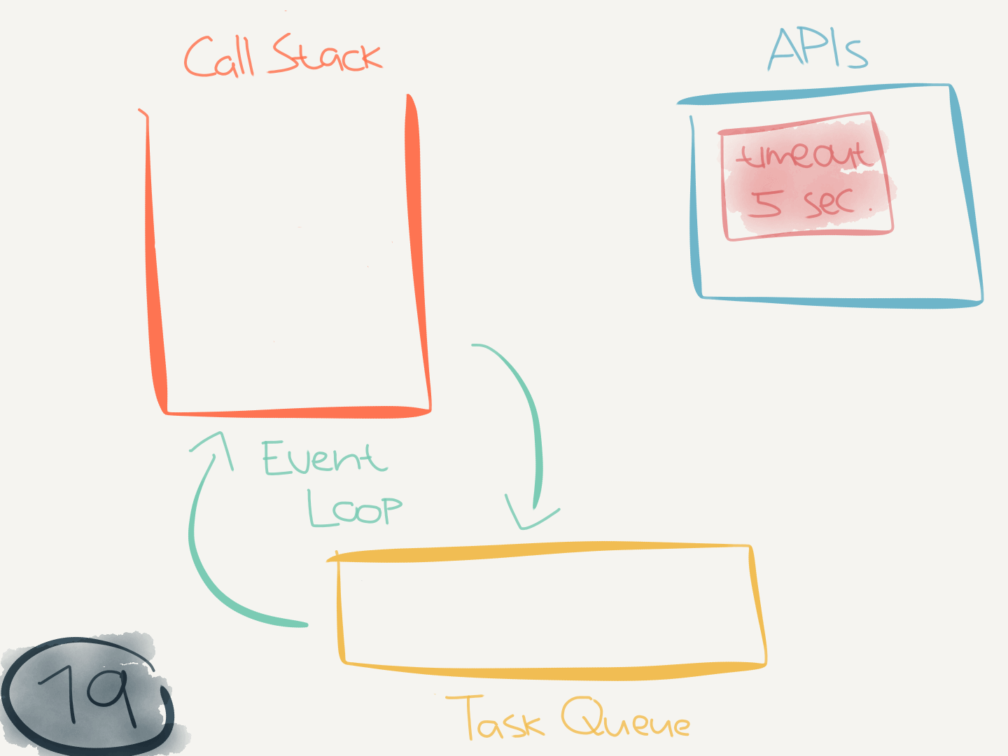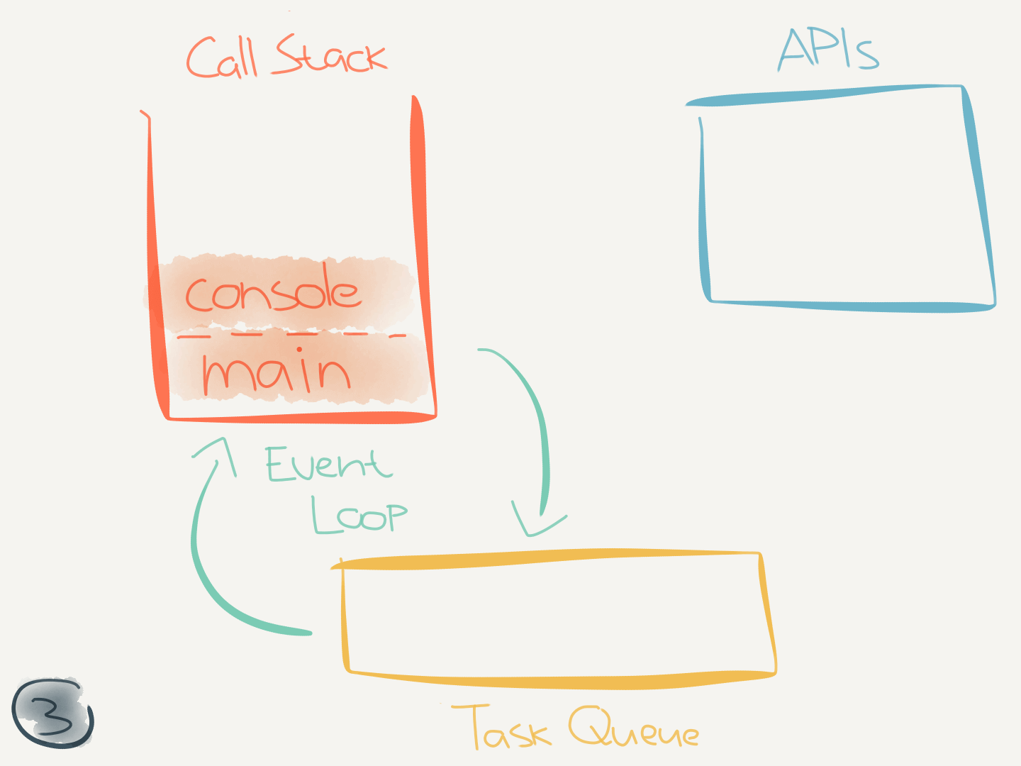 This code didn’t interact with any asynchronous (internal) APIs. But when it does (like when calling setTimeout(callback)) it makes use of the task queue.