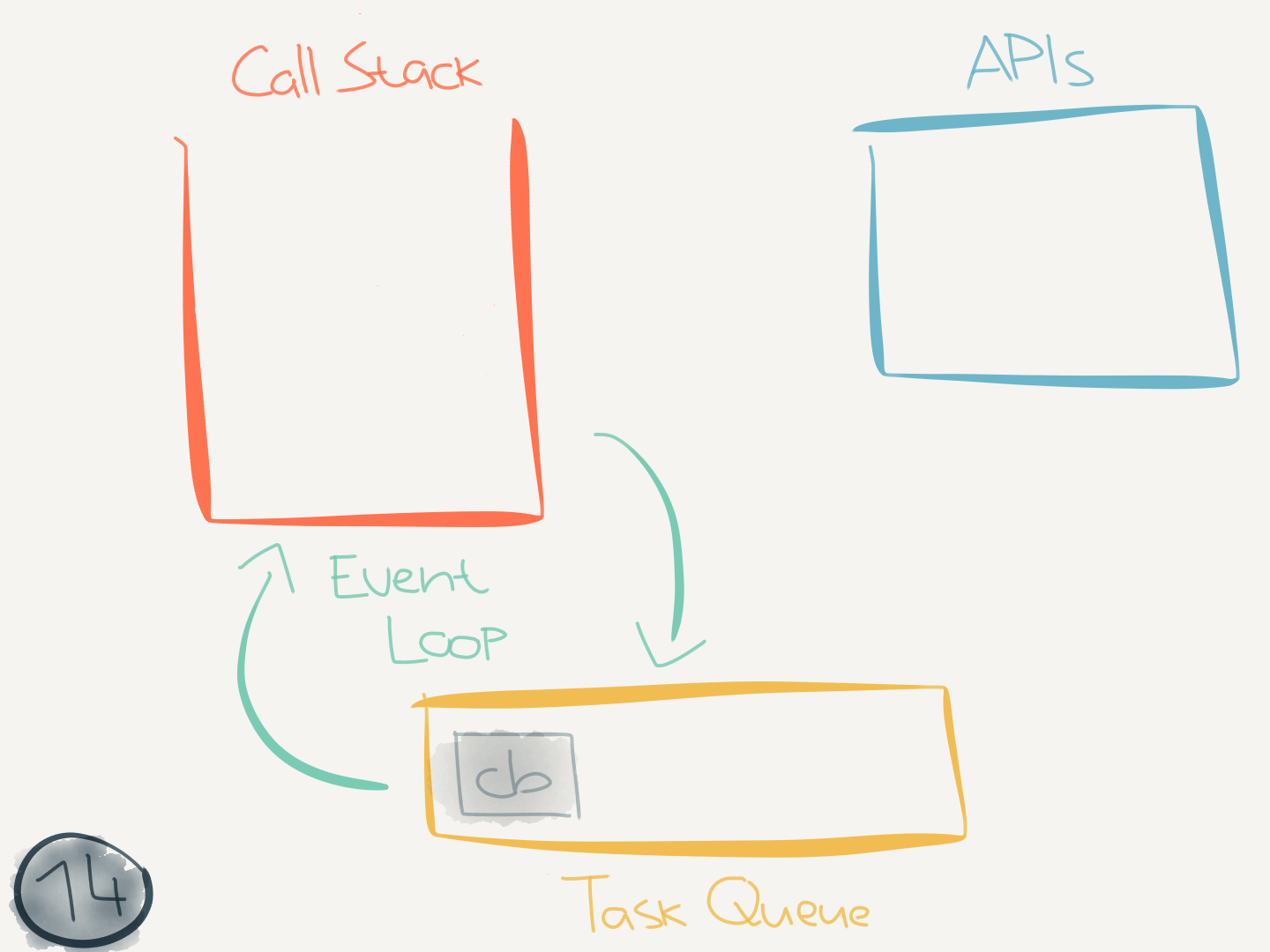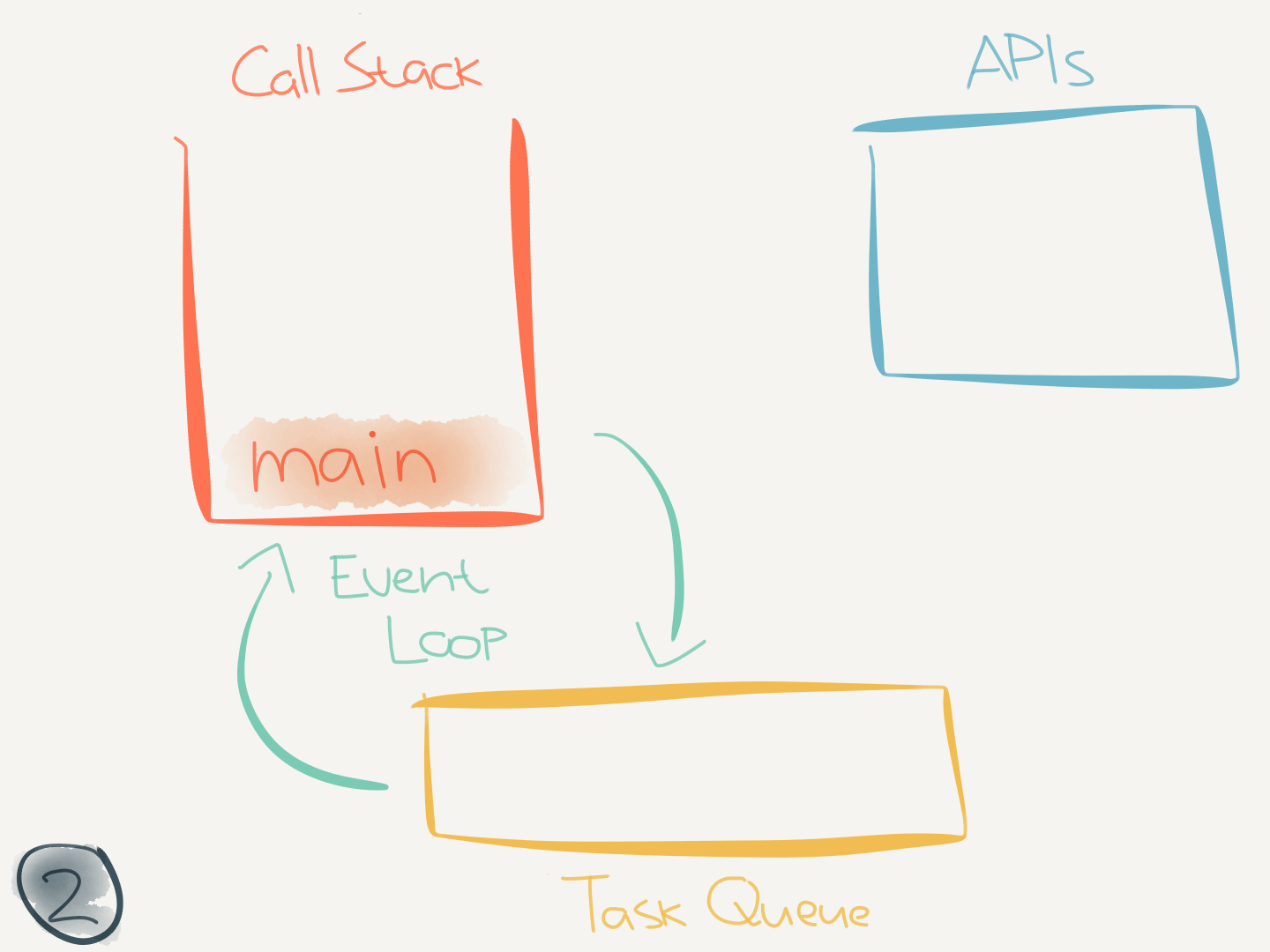 setTimeoutorPromise) the corresponding callbacks are eventually added to the task queue. - When the call stack is empty and the task queue contains one or more tasks, the event loop will remove a task on every tick and push it onto the call stack. The function will execute and this process will continue until all work is done.