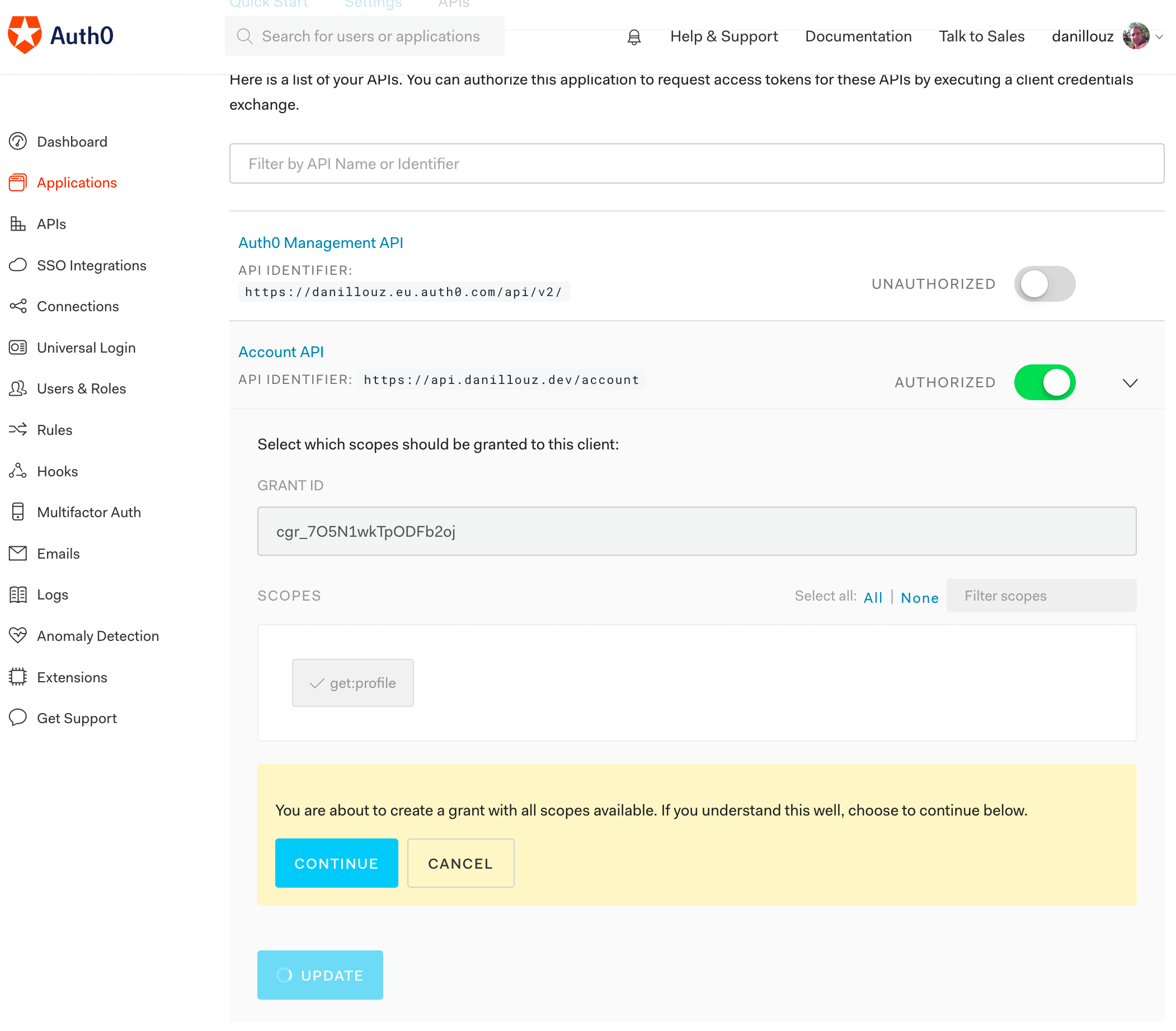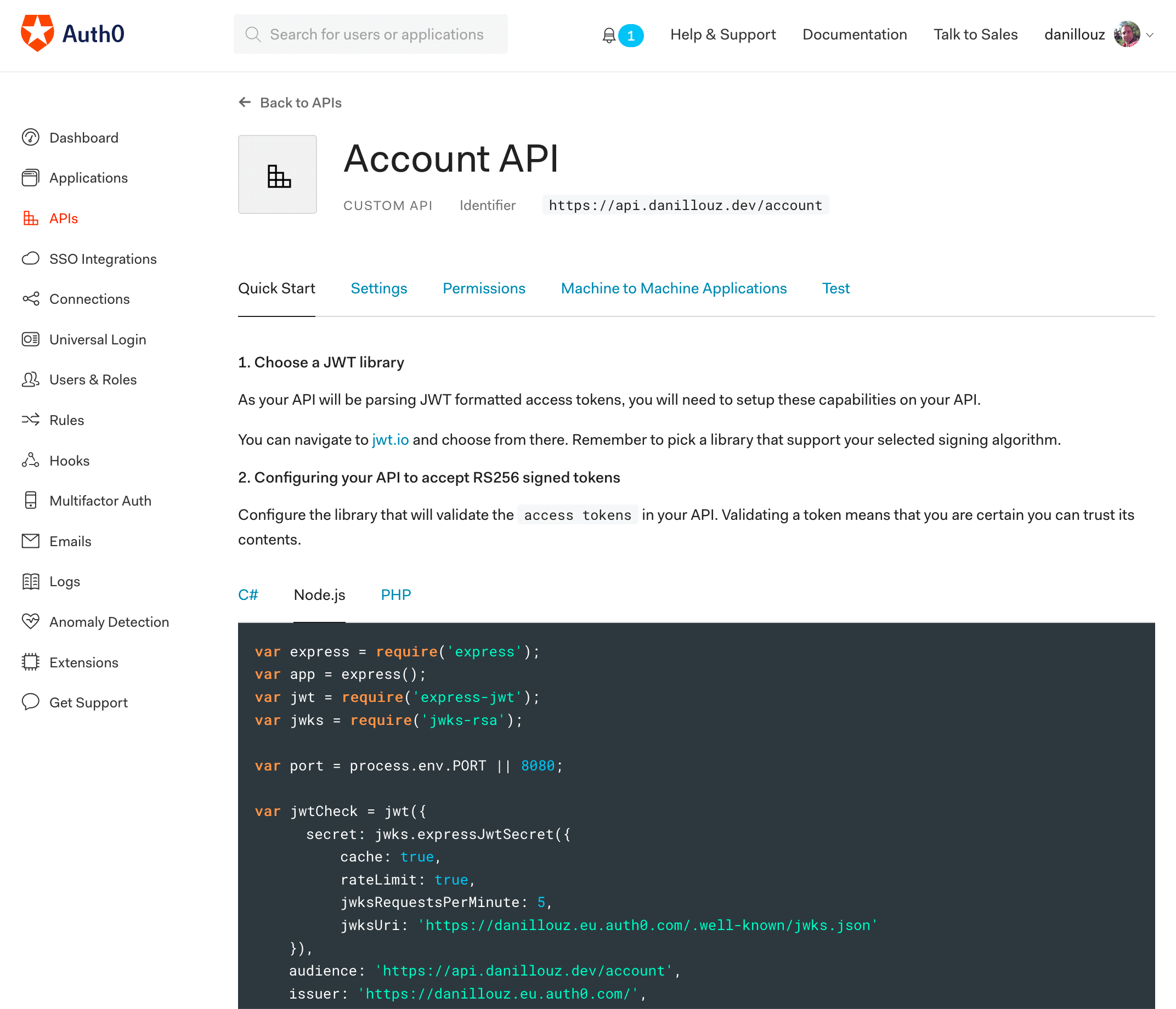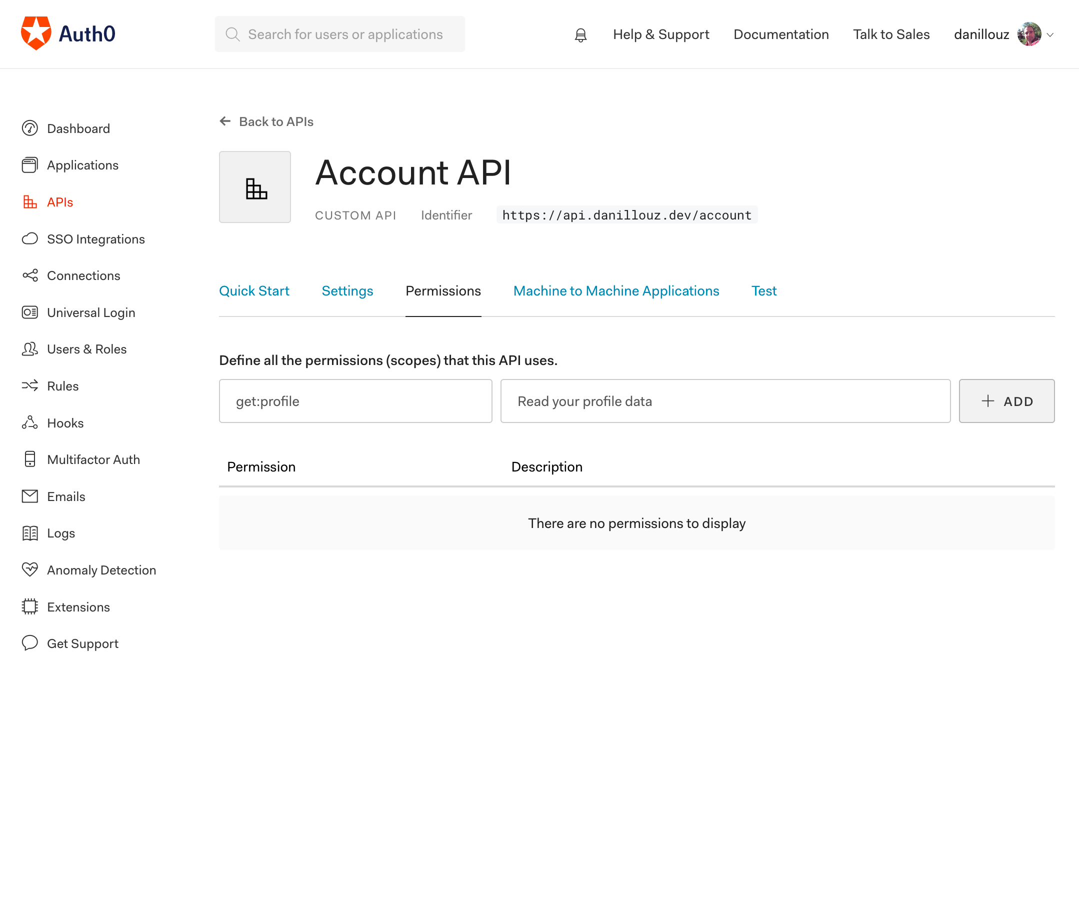 We’ll use this scope when implementing the Account API. And you can read more about scopes in the Auth0 docs.