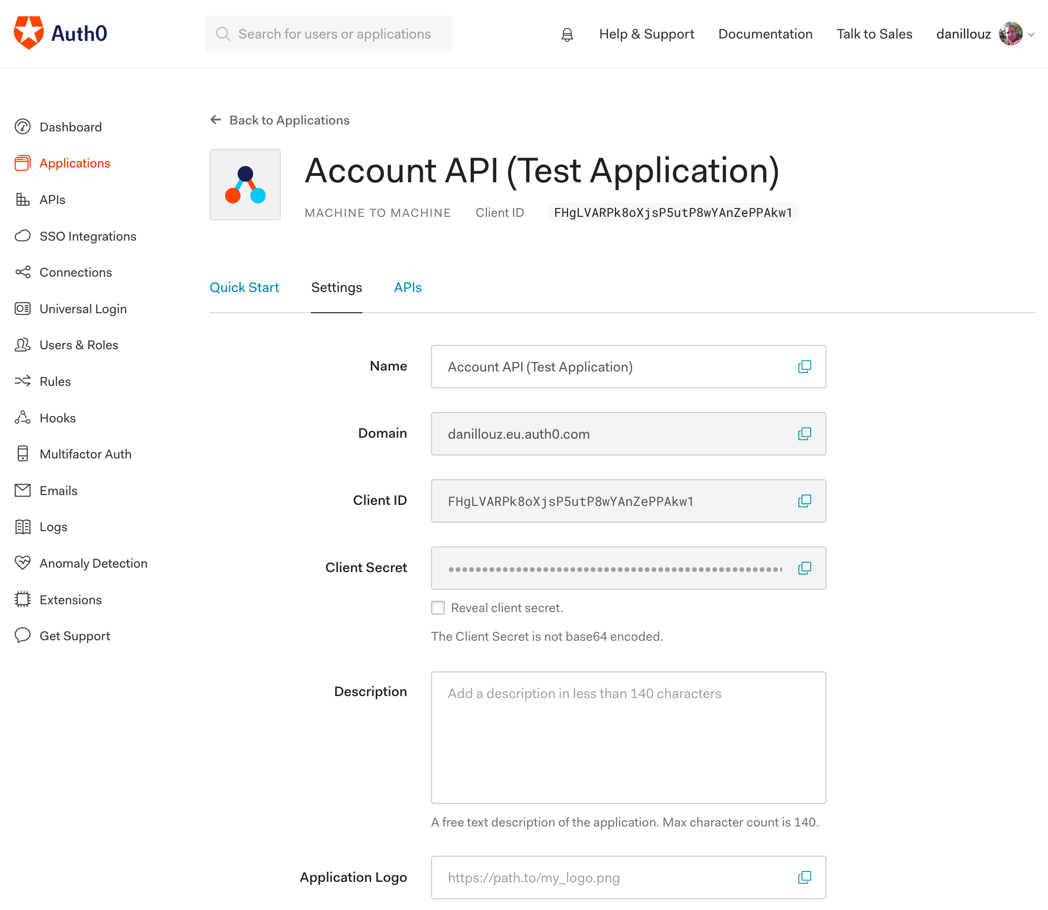 When the Account API receives a request with the bearer token, it will have to verify the token with the help of Auth0. In order to do that, we first have to register our API with them: